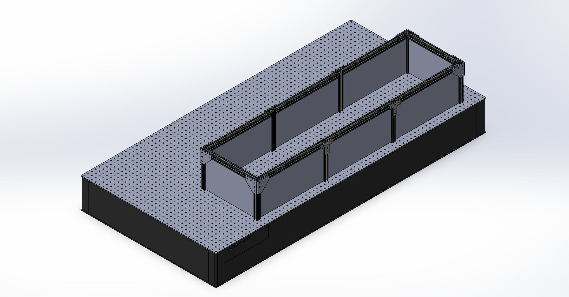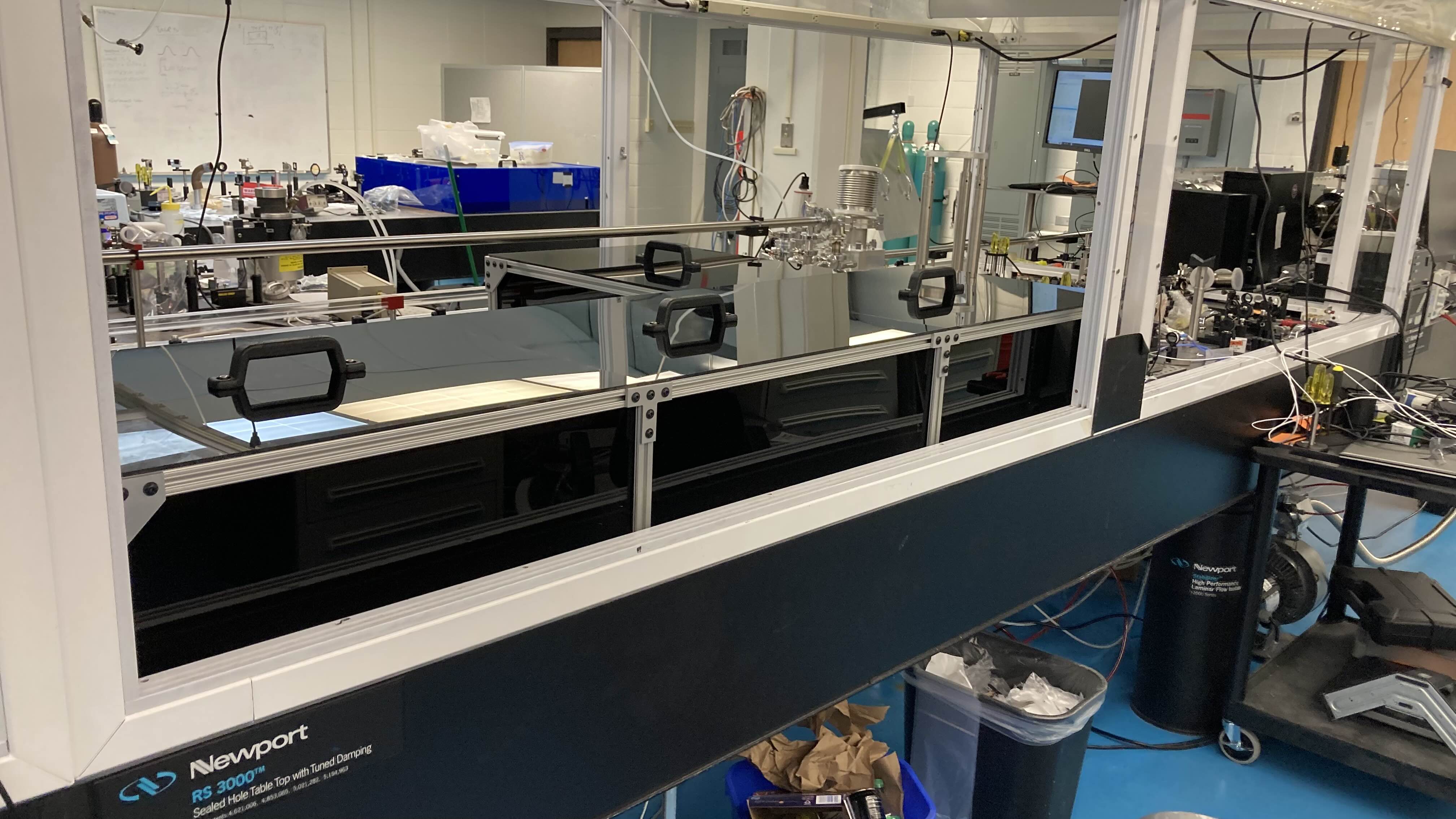 In order to have a stable laser, it need to start in a stable environment. The project was an replacement to the previous enclosures in order to have proper isolation from unstable air currents present within the lab. Made from extruded aluminum and black acrylic, this enclosure prevents unwanted air currents from disrupting the laser oscillator.